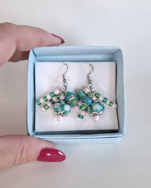 Upeat Rykelmä -korvakorut turkoosein ja vaaleanpunaisin lasihelmin. Nämä värit herkuttelee yhdessä ja kiinnittää katseen. Lasihelmet valmistettu käsin lampputekniikalla, korut koottu laadukkaista materiaaleista. Korvakorukoukku kirurginterästä, joka on tutkittu ja turvallinen materiaali.